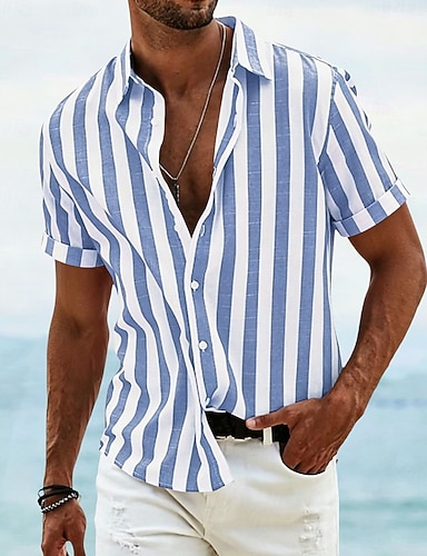 Pánské Košile Lněná košile Letní košile Plážová košile Bavlněná lněná košile Pruhované košile Proužky Dovolená Havajské Žlutá Rubínově červená Vodní modrá Trávová zelená Dlouhý rukáv Přehnutý Jaro