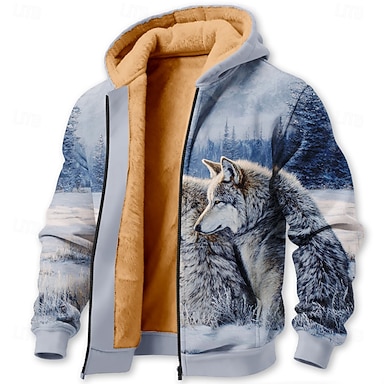 Pánské Vlk Fleece Kapuce Kurtka Mikina Klasické Lovecká Dlouhý rukáv Tričkový Venkovní Kempink Vodní modrá Zapni Podzim Zima Návrhář S M L XL 2XL 3XL
