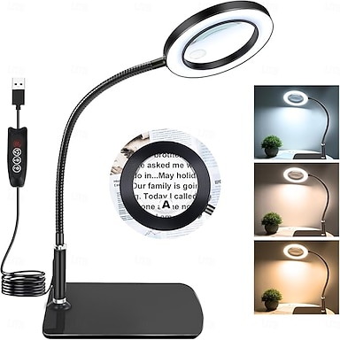 10 x 20x lupa se světlem a stojanem, lupa se 72 LED diodami, 3 barevné režimy a stmívatelné lupové světlo pro hobby čtení, práci zblízka, šperky, USB 1 ks