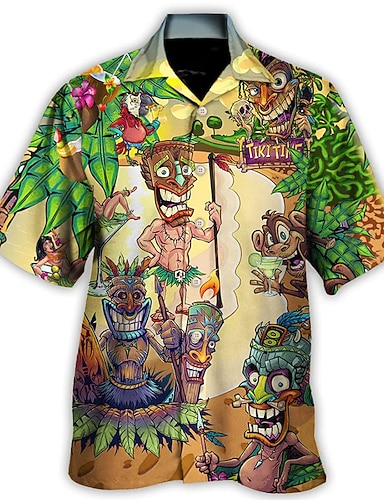 Pánské Komiks Maska Tropické rostliny Havajská košile Táborová košile Aloha košile Krátký rukáv Košile Přehnutý Módní Havajské Designové Ležérní Denní Venkovní Vodní modrá Žlutá Rubínově červená S M L
