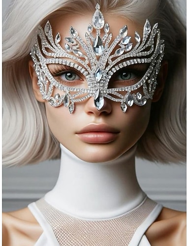 Dámská křišťálová maškarní maska s kamínky - luxusní třpytivá diamantová maska na obličej pro dámy, elegantní kostýmní doplněk na halloweenskou párty, ples a večerní akce