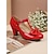 dámské červené podpatky s páskem ve tvaru T s mašlí a blokovými podpatky – elegantní boty inspirované vintage na večírky a formální příležitosti