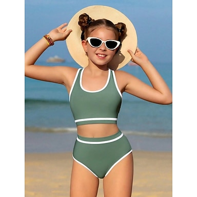 Děti Dívčí Plavky Venkovní Plážové Barevné bloky prázdniny Sportovní Módní Plavky 4 roky + Léto Vodní modrá Černá