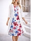 Dvoudílné A-Linie K lýtkům Šaty pro svatební hosty Šaty pro matku nevěsty Bez rukávů 3/4 délka rukávu Tričkový Elegantní Jednoduchý Minimalistické Formální Poloformální Šifón Žakár s Květinový potisk