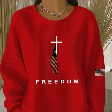 Svetr na zip pro ženy na Den nezávislosti geometrický pruhovaný aktivní módní běžné dlouhý rukáv kulatý výstřih běžné topy každodenní nošení potisk bílá jaro podzim zima