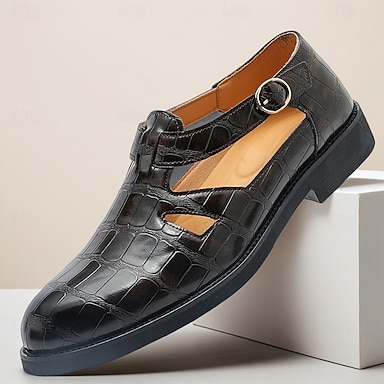 Pánské černé společenské boty s T-barem a krokodýlím vzorem, spona, pásek, formální módní mokasíny na svatby, večírky, bankety, plesy, do kanceláře a na večerní nošení pro pány.