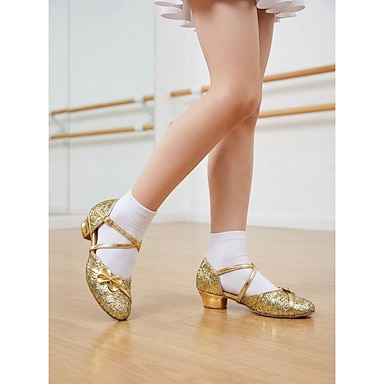 Dámské zlaté třpytivé boty na latinskoamerické tance, třpytivé podpatky pro společenské tance pro dospělé &děti, profesionální vystoupení &obuv na soutěžní párty