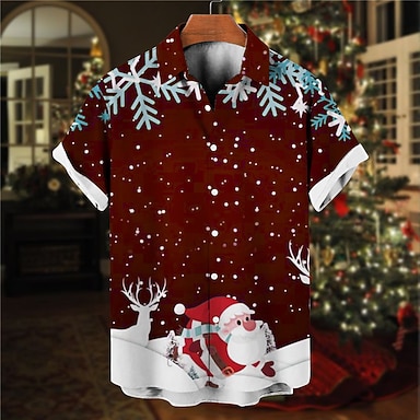 Pánské Strom Grafické tisky Košile Dlouhý rukáv Košile Přehnutý Vánoce ulice 3D tisk Rubínově červená Tisk Tlačítko dolů Oblečení Módní Designové Na běžné nošení Měkké