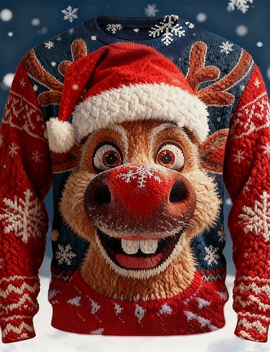 Ošklivý vánoční svetr Pánské Komiks Ježíšek Tisk Pulovrový svetr Úplet Výstřih ke krku Na běžné nošení Dovolená Denní Festival Zahřívací Dlouhý rukáv Podzim Zima Černá Rubínově červená Trávová zelená