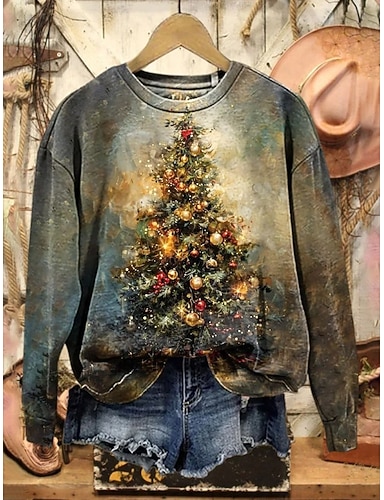 Vánoční dámské tričko s grafikou Claus vintage stylové klasické dlouhý rukáv klasický krční výstřih véčkový krční výstřih běžné topy každodenní knoflíkový potisk asymetrický černá červená modrá