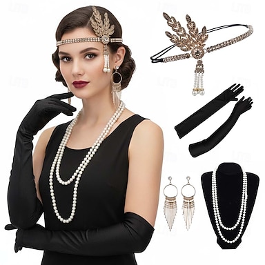 Sada Retro Řvoucí 20s 20. léta 20. století Bubenová čelenka Doplňky do vlasů Sada příslušenství Velký Gatsby Buben dívka Peří Maškarní kostým Dámské Vánoce Karneval Vánoce Retro tematická párty