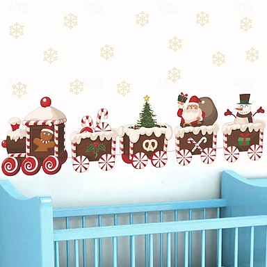 Vánoční samolepka na zeď s motivem Santa Clause, sněhové vločky, kreslený vláček, design, odnímatelná samolepka na zeď do dětského pokoje, obývacího pokoje, ložnice, sváteční párty, bytové dekorace.