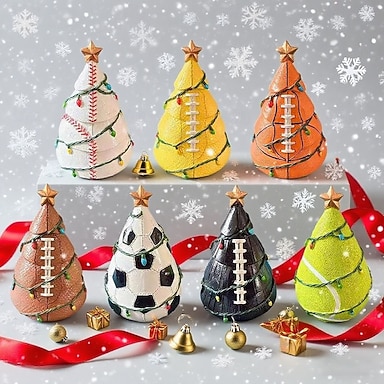 Fotbalová vánoční dekorace na mini vánoční stromeček se sportovní tematikou, dekorativní dekorace na stůl, figurka s hvězdou, jedinečné dárky pro milovníky míčových sportů.