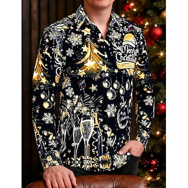 Vánoce Pánské Ježíšek Vánoční stromek vánoční dárek Košile Košile na knoflíky Dlouhý rukáv Legrační Venkovní Dovolená Jaro Podzim Přehnutý 3D tisk košile s límečkem Vodní modrá Modrá 3# modrá 2