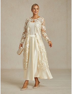 Damen Jacke Atmungsaktiv Spitze Stickerei Elegant Blumen Täglich Jahrestag Hochzeitsgast Vorne geknöpft Lang Rundhalsausschnitt Normale Passform Langarm Oberbekleidung Champagner Sommer Frühling