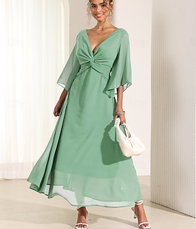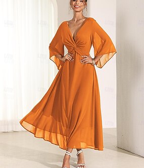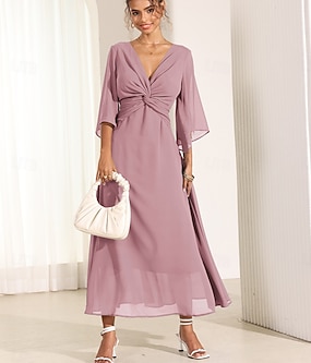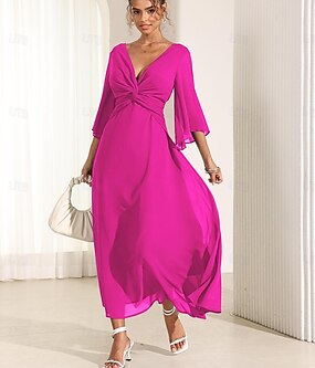 Damen Maxikleid A Linie Kleid Elegant Ausgestellter Ärmel Hochzeitsgast Cocktailparty Normale Passform Blumen Dreiviertelarm V Ausschnitt Rote Sommer
