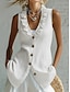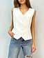 Damen Sommeroberteile Bluse Elegante Oberteile Gerafft Patchwork Knöpfe Einfarbig Einfach Elegant Vintage Damen Ärmellos V Ausschnitt Normale Oberteile Täglich Arbeit Ferien Weiß Sommer Frühling