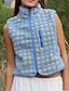 Damen Bluse Reißverschluss Karomuster Elegant Vintage Stilvoll Ärmellos Hoher Ausschnitt Normale Oberteile Ferien Ausgehen Blau Schwarz Rote Grün Winter