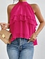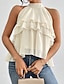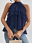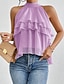 Damen Tank Top T-Shirt Rüsche Einfarbig Elegant Mode Ärmellos Hoher Ausschnitt Normale Oberteile Täglich Ausgehen Wochenende Schwarz Marineblau Himmelblau Purpur Grün Sommer Frühling