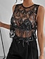 Damen T Shirt Tank Top Pailletten Netz Einfarbig Grafik Abstrakt Mode Sexy Modern Ärmellos Rundhalsausschnitt Normale Oberteile Täglich Ausgehen Wochenende Khaki Sommer Frühling
