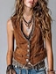 Damen Bluse Quaste Einfach Western Ärmellos V Ausschnitt Normale Oberteile Ferien Ausgehen Schwarz Leicht Braun Sommer Frühling