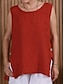 Damen T Shirt Hemd aus Leinenimitat T-Shirt Knöpfe Einfach Mode Stilvoll Klassisch Ärmellos Kurzarm Rundhalsausschnitt Normale Oberteile Täglich Ausgehen Wochenende Blau Weiß Rote Purpur Braun Sommer