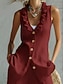 Damen T Shirt Tank Top T-Shirt Knöpfe Einfach Mode Klassisch Lässig Ärmellos V Ausschnitt Normale Oberteile Täglich Ausgehen Wochenende Braun Sommer Frühling