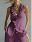 Damen T Shirt Kunstbaumwollleinen T-Shirt Rüsche Einfach Mode Stilvoll Klassisch Ärmellos V Ausschnitt Normale Oberteile Täglich Ausgehen Wochenende Blau Schwarz Weiß Wein Purpur Sommer Frühling