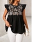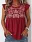 Damen T Shirt T-Shirt Bestickt Blumen Bohemien Vintage Lässig Ärmellos Rundhalsausschnitt Normale Oberteile Täglich Ausgehen Wochenende Blau Schwarz Rote Grün Grau Sommer Frühling