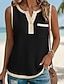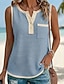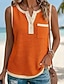 Damen Hemd Waffelhemd Tank Top Ärmelloses Shirt Patchwork Tasche Knöpfe Farbblock Stilvoll Klassisch Modern Ärmellos V Ausschnitt Normale Oberteile Täglich Ferien Ausgehen Schwarz Orange Leicht Blau