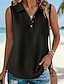Damen T Shirt Tank Top T-Shirt Spitze Knöpfe Einfarbig Grafik Einfach Mode Klassisch Lässig Ärmellos V Ausschnitt Normale Oberteile Täglich Ausgehen Wochenende Schwarz Sommer Frühling