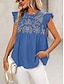 Damen Tank Top Ärmelloses Shirt T-Shirt Bestickt Netz Blumen Mode Klassisch Lässig Ärmellos Rundhalsausschnitt Normale Oberteile Täglich Ausgehen Wochenende Blau Aprikose Sommer Frühling