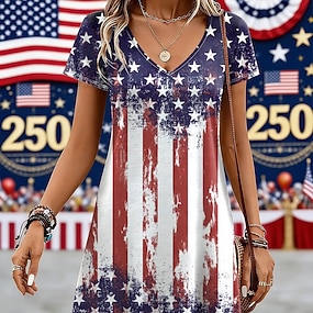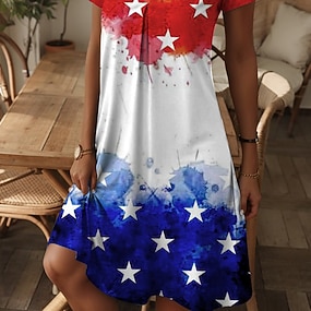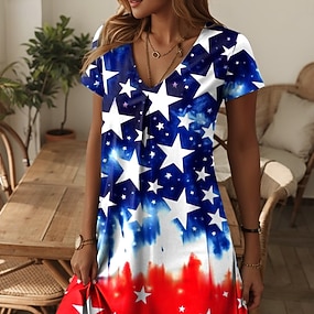 Amerikanischer Unabhängigkeitstag Damen Minikleid Sommerkleid T-Shirt-Kleid A Linie Kleid Lässig Täglich Normale Passform Flagge Kurzarm Rundhalsausschnitt V Ausschnitt Blau Marineblau Weiß Sommer