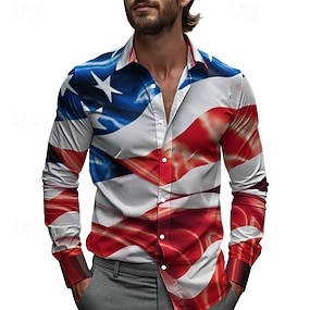 Herren 250. Jahrestag des Unabhängigkeitstages der USA am 4. Juli Freiheitsstatue US Flagge Hemd Knopfhemd Langarm Patriotisch Ferien Alltagstauglich Frühling Herbst Umlegekragen 3D-Druck