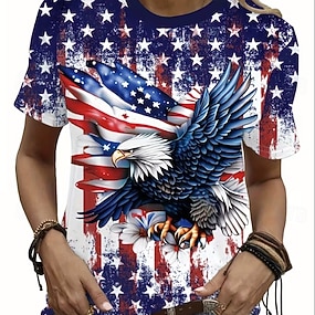 Amerikanischer Unabhängigkeitstag Damen T Shirt Druck Grafik Flagge Stilvoll Klassisch Lässig Kurzarm Rundhalsausschnitt Rundhals Normale Oberteile Täglich Blau Weiß Rote Rot / Blau Sommer Frühling