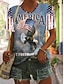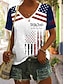 Amerikanischer Unabhängigkeitstag Damen T Shirt Druck Grafik Flagge Vintage Stilvoll Klassisch Kurzarm V Ausschnitt Normale Oberteile Täglich Schwarz Weiß Khaki Sommer Frühling
