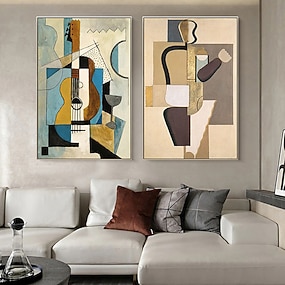 Handgefertigtes Ölgemälde auf Leinwand, Wandkunst, Dekoration, Picasso-Stil, abstrakte musikalische Violine für Wohnkultur, gerolltes, rahmenloses, ungedehntes Gemälde