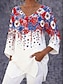 Amerikanischer Unabhängigkeitstag Damen Hemd Bluse Druck Blumen Grafik Flagge Vintage Täglich Stilvoll Langarm Rundhalsausschnitt V Ausschnitt Lange Oberteile Täglich Ausgehen Rote Purpur Grün Sommer