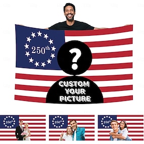 benutzerdefinierte 250. Jahrestag amerikanische Flagge mit Foto personalisierte Wandteppich Poster entwerfen Sie Ihr Bild für Dekor Clubs Konzerte Bars Schlafsäle Wohnzimmer Schlafzimmer