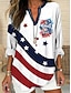 Unabhängigkeitstag Patriotische Damenbluse Leinenähnlich Atmungsaktiv Leicht Tunika V-Ausschnitt Lange Ärmel Boho Lässig Grafik Flagge Vintage Tropisch Reguliere Oberteile Täglicher Druck