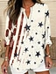 Amerikanischer Unabhängigkeitstag Damen Bluse Druck Grafik Flagge Vintage Tropisch Hawaiianisch Langarm V Ausschnitt Lange Oberteile Täglich Ferien Strandbekleidung Weiß Rot / Blau Beige Sommer