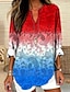 Amerikanischer Unabhängigkeitstag Damen Shirt Knöpfe Druck Grafik Amerikas Jubiläum Vintage Stylisch Modern Lange Ärmel Hemdkragen Reguläre Oberteile Alltag Blau Schwarz Rot Rot Blau Sommer Frühling