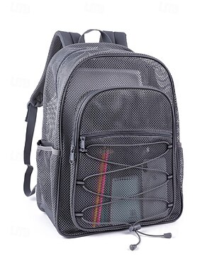 schwarz-grauer Netzrucksack mit Reißverschlussfach, verstellbarem Schultergurt, Unisex, modisches Design – geeignet für Schule, Sport, Fitness und den täglichen Gebrauch