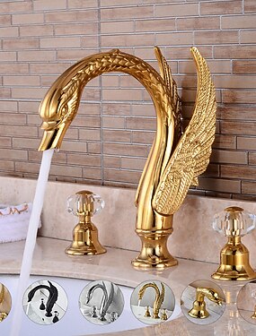 weit verbreitete waschtischmischbatterie, 2 griff 3 löcher waschtischarmaturen schwan edle luxus goldene und ölgeriebene bronze badarmaturen