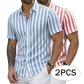Herren Leinenhemd Zweiteilig Hemd Set Und Shorts Leinenshorts Strandshorts Set Vertikale Streifen Lässig Täglich Outdoor Umlegekragen Kurzarm Sommer Mode Lässig Bequem Bekleidung