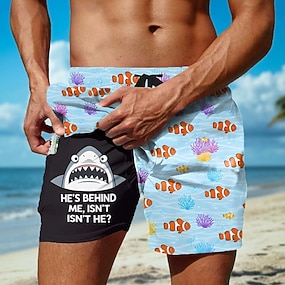 Herren Hai Meeresbewohner Lustiger Slang Gefütterte Shorts 2 in 1 Badeshorts Badeshorts Mittlere Taille Hawaiianisch Ferien Seitentaschen Mit Kompressionsfutter Elastischer Kordelzug in der Taille