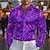 Karneval Herren Maske Blende Farbe Karnival Satinhemd Oberhemd Knopfhemd Langarm Modisch lässig Geschenk Festtage Festival Sommer Frühling Umlegekragen Hemden mit Kragen 3D-Druck Purpur