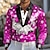 Karneval Herren Maske Karnival Satinhemd Oberhemd Knopfhemd Langarm Modisch lässig Geschenk Festtage Festival Sommer Frühling Umlegekragen Hemden mit Kragen 3D-Druck Purpur