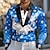 Herren Blumenmuster Blumen Satinhemd Oberhemd Knopfhemd Langarm Modisch lässig Urlaub Täglich Abendgesellschaft Sommer Frühling Herbst Umlegekragen Hemden mit Kragen 3D-Druck Blau