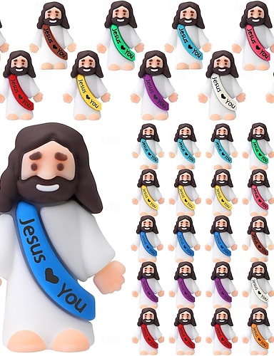 50/100 Stück kleine Jesusfiguren, Original Jesus, ich liebe dich, in Großpackung, winzige Statuen, Mini-Gummispielzeug zum Verstecken spielen, Weihnachts-, religiöse Party-Gastgeschenke, Sonntagsschule
